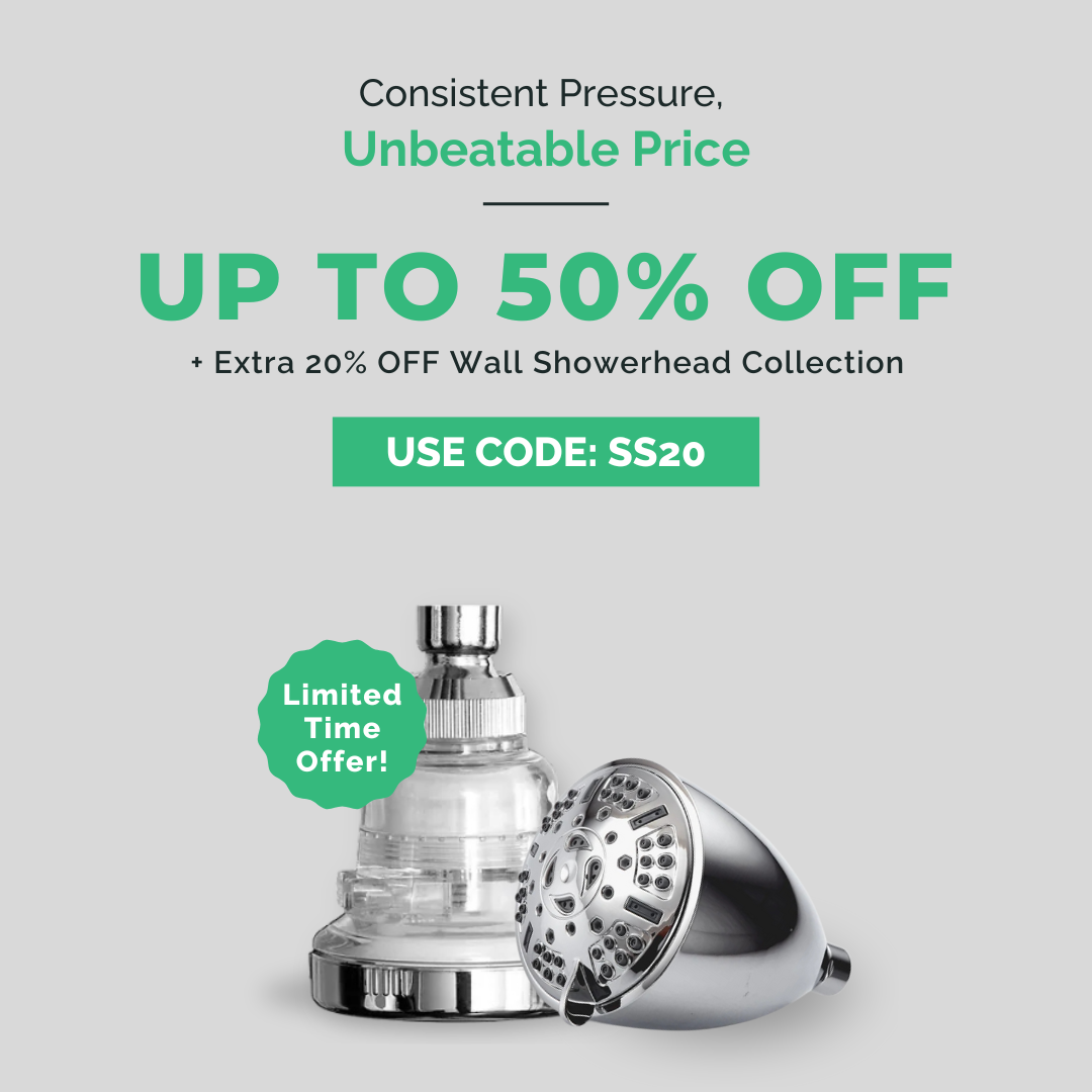 Vícerežimová nástěnná sprchová hlavice Ecolux s 20stupňovou filtrací- Pravidelná cena