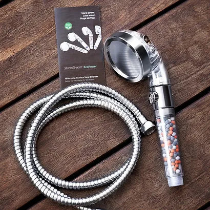 StoneStream® EcoPower reduces shower water consumption by up to 35%. In the average US home, StoneStream® can save $227 on your yearly water bill. If everyone in the US used StoneStream®, we could save over $6 Billion every year in water consumption and heating.