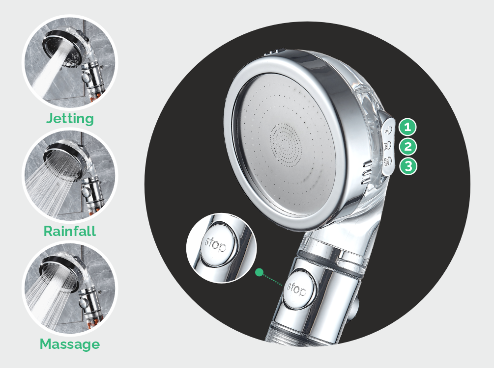 • 3 Spray Modes: Customize your shower with Rainfall, Jetting, and Massage settings for relaxation or refreshment, depending on your mood.