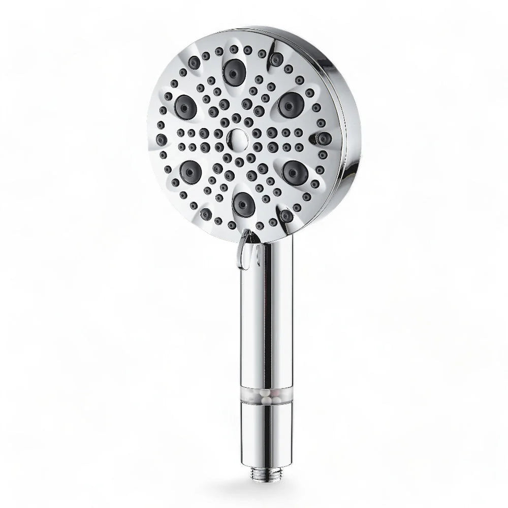 The shower head is equipped with a filtration system that reduces chlorine, limescale, and other water impurities, contributing to healthier skin and hair.