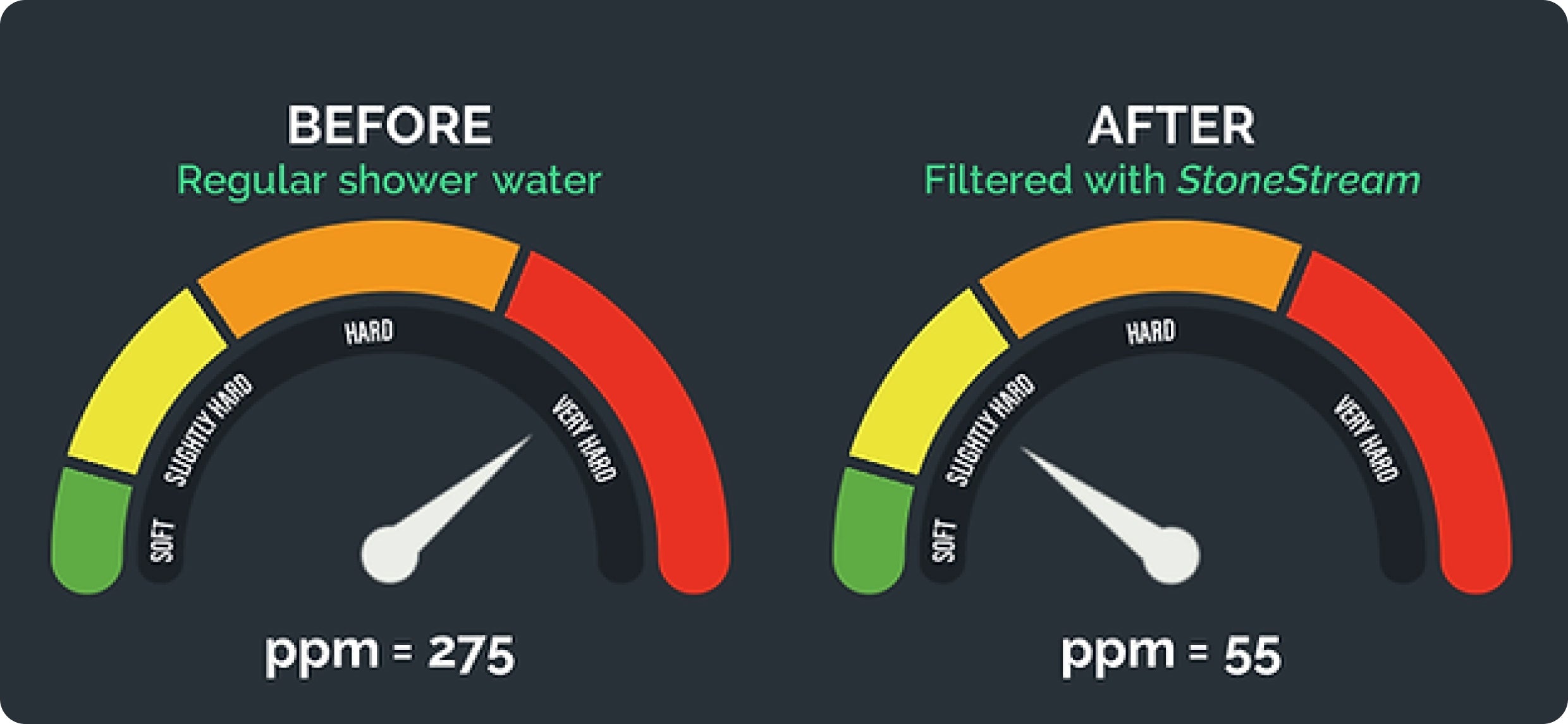 3 druhy mineralizovaných kamenů výrazně sníží nečistoty ve vodě, chlór a bakterie, které jsou zdrojem poškozených vlasů a suché pokožky. Díky těmto čisticím účinkům vám StoneStream EcoPower pomůže obnovit rovnováhu pH na vaše vlasy a tělo.